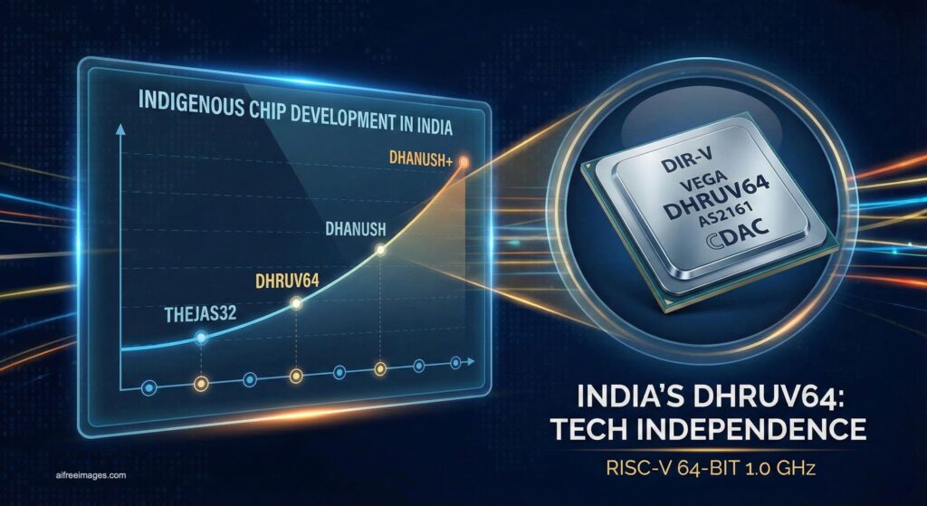Une partie concrète de l’annonce concerne le positionnement de DHRUV64 dans le cadre du programme Digital India RISC-V (DIR-V). Selon le communiqué, DHRUV64 serait le troisième chip réalisé dans le cadre de ce programme : après THEJAS32 (fabriqué en Silterra, Malaisie), puis THEJAS64 (fabriqué au Semiconductor Lab, SCL Mohali, en Inde), vient DHRUV64. Des variantes comme DHANUSH64 et DHANUSH64+ sont en cours de développement, forçant à voir les exportations comme une étape intermédiaire.