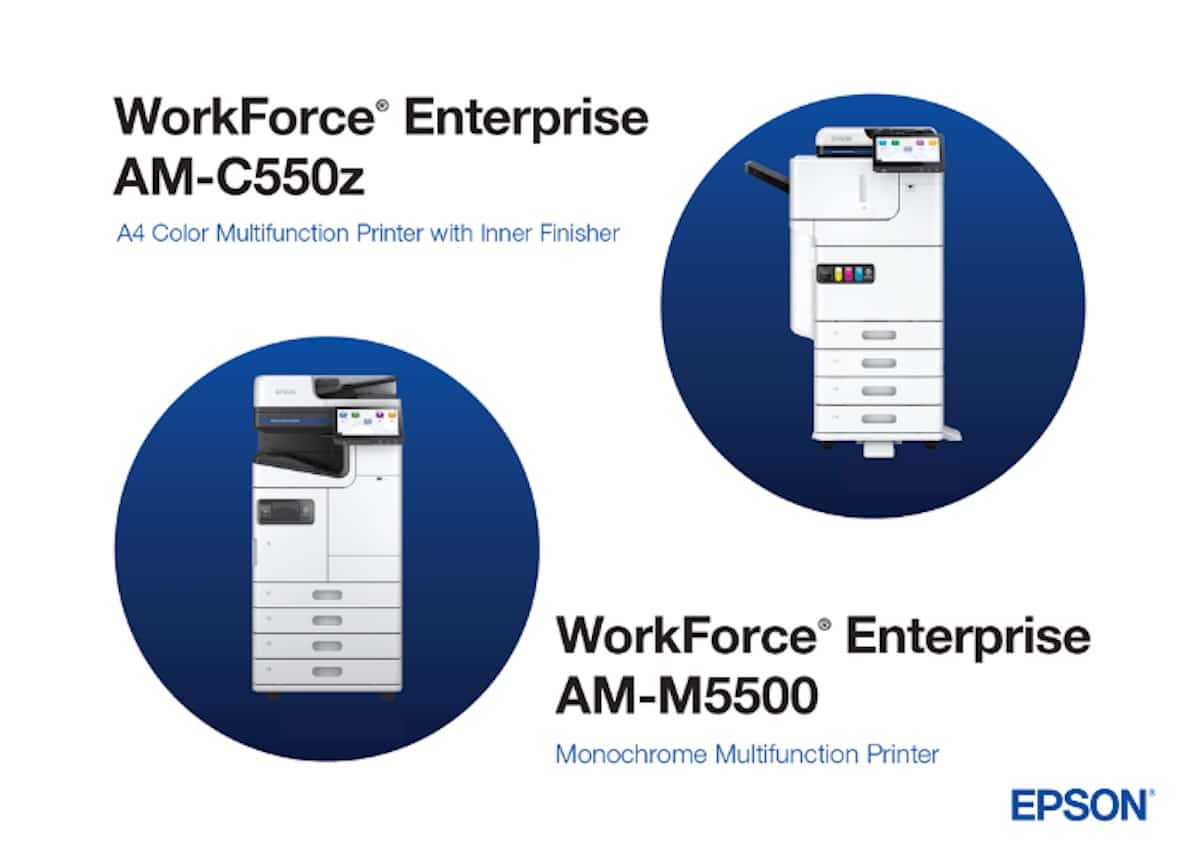 Le premier est le WorkForce Enterprise AM-C550z, une imprimante multifonction couleur capable de produire 55 pages par minute en format A4, équipée d’un finisher interne compact. Le second, le WorkForce Enterprise AM-M5500, est une imprimante monochrome aussi à 55 pages par minute, mais en format A3, adaptée aux départements et équipes exigeant un flux d’impression constant.