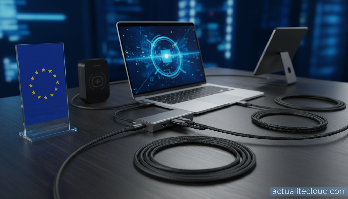 Du côté des câbles, la réglementation oblige aussi à une meilleure lisibilité. Les câbles USB-C certifiés pour 100 W ou 240 W devront porter des marquages clairs. Cette exigence de traçabilité ressemble à ce que font d’autres secteurs tech en matière de certification — l’approche rappelle la logique de transparence que Cisco a appliquée à ses commutateurs quantiques universels sur fibre optique standard, où l’interopérabilité entre équipements de fabricants différents devient une priorité réglementaire et commerciale.