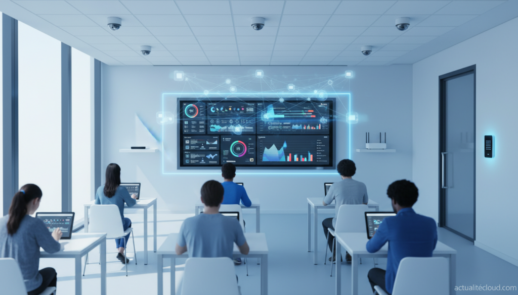 Côté administratif, l’IoT libère un temps précieux. L’appel automatisé par badge RFID, la réservation intelligente des salles, la maintenance prédictive du matériel (un vidéoprojecteur qui signale sa lampe en fin de vie avant la panne) ou la gestion centralisée du parc informatique réduisent la charge administrative. Les directions d’établissement rapportent des gains de productivité de 20 à 25 % sur les tâches de gestion courante.